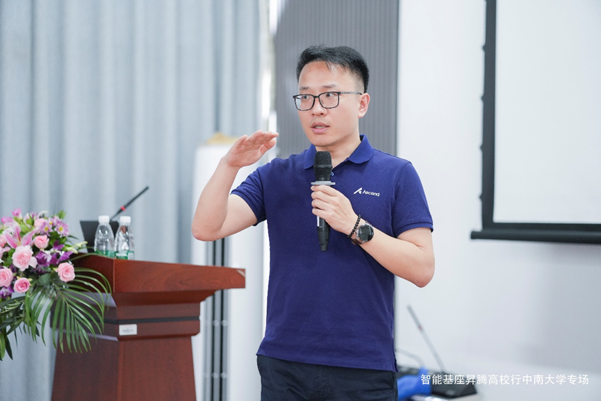 昇腾AI开发者生态总监李基盛以“携手开发者,共创数智未来”为题,为专家分享环节拉开序幕。他表示,开发者是促进产业繁荣的重要推力,昇腾AI始终重视开发者工作,积极参与开发者生态建设,从技术、运营等方面进行生态协同,帮助开发者加速产品应用创新。此外,昇腾AI还为开发者提供丰富多样的开发者活动,并通过体系化成长计划及权益激励为开发者赋能,与开发者携手并进。生动精彩的演讲激发了同学们投身行业的信心。