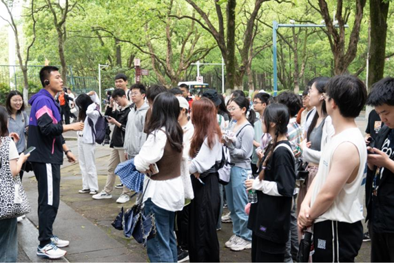 活动于当日下午3点准时开始,各小组热情高涨,纷纷踏上登山之路。沿着山间台阶向上攀登,沿途风景美不胜收,放眼望去,皆是绿意,让人心旷神怡。同学们和老师言笑晏晏,一边讨论着专业的趣事,一边探索着春日岳麓山中的奥妙。很快,各个小组的成员依次抵达山腰的补给处,工作人员为同学们准备补给,让大家在休息的过程中可以补充能量,再攀新高。