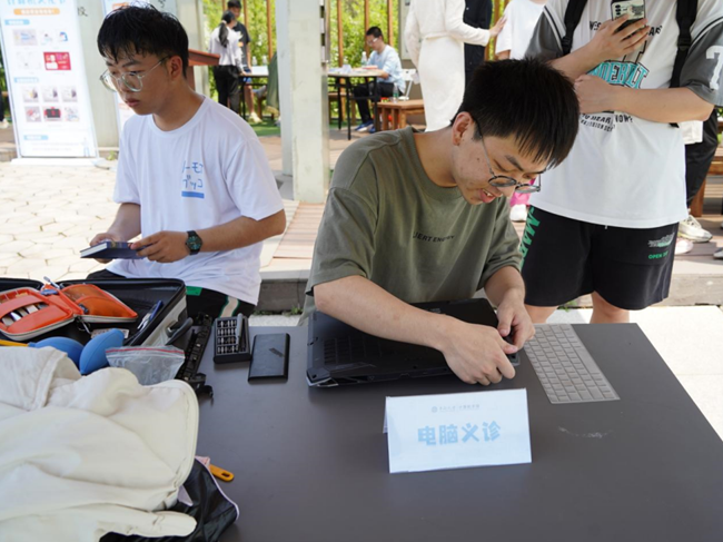 在电脑义诊区,今年会官网青志协电维部成员为同学们提供电脑义诊服务,发挥个人特长,为师生带来便利。