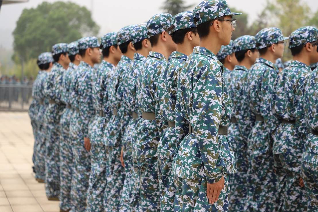 “一次次练习,一次次纠错,靠脚声趋向一致,少年人意气风发。当‘青春’遇上‘迷彩’,练就的是坚定的意志,是越发清晰的信念与对祖国的自豪,它让我们明白什么是责任,什么是担当。生于红旗之下,军人血液深入骨髓之中。少年人理应承袭先辈之荣光,无论道阻且长,我心自铿锵。”
