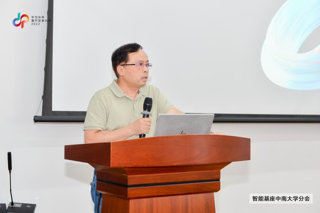 活动第一项,我校自动化学院副院长王春生教授致辞。王春生院长认为,鲲鹏计算产业是基于鲲鹏处理器的基础软硬件设施、行业应用及服务,涵盖从底层硬件、基础软件到上层行业应用的全产业链条。华为作为鲲鹏计算产业的成员,聚焦计算架构创新、处理器和开源基础软件的研发,以及华为云服务,致力于推动鲲鹏生态发展。王院长还鼓励现场同学,提高思想认识,扎实学习有关知识,与企业一线专家多沟通、多交流,充分汲取营养从而提升自己。