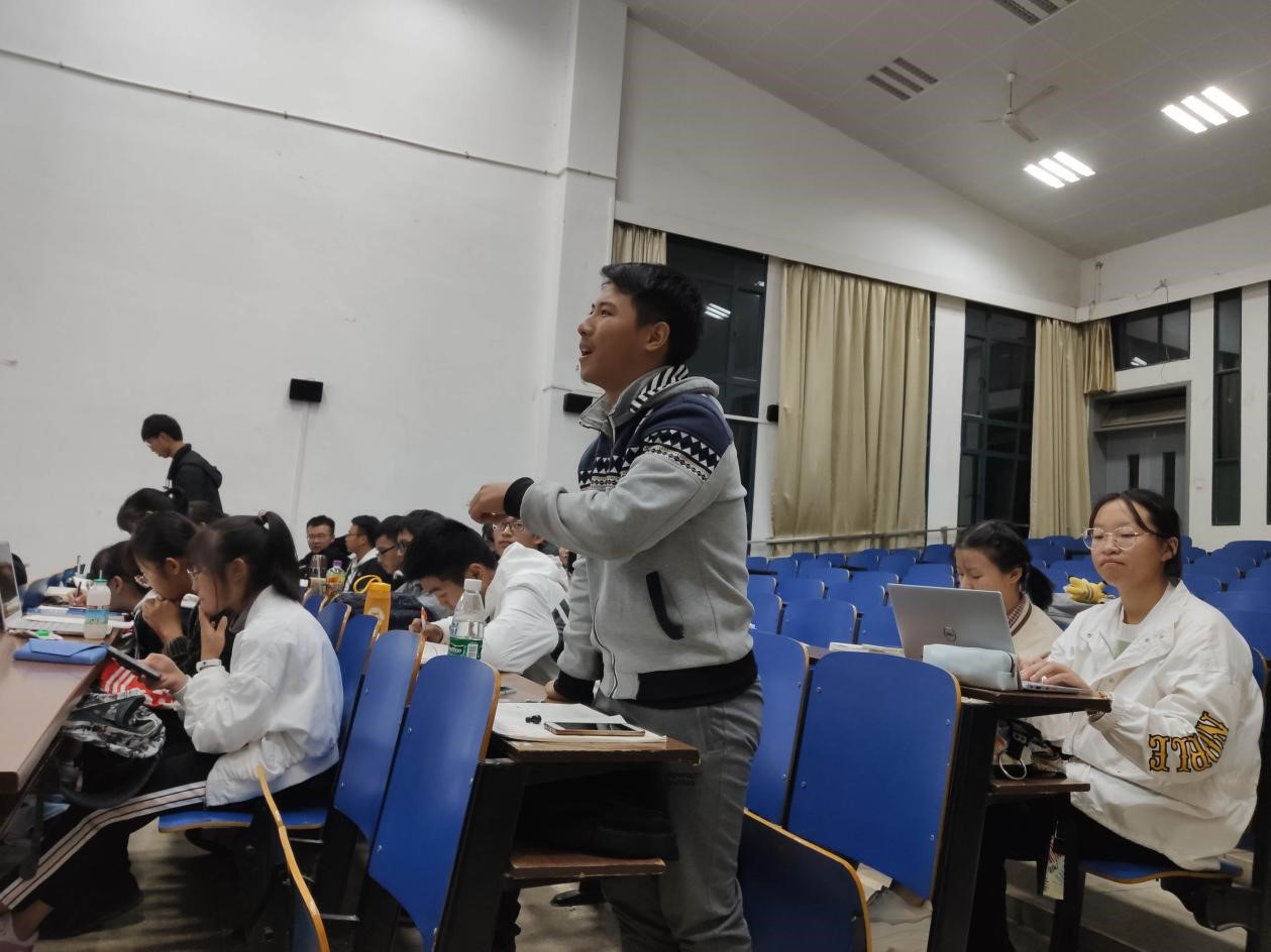 交流会上,首先由学习委员对第九周的学习情况、学业事务以及班级学风进行了总结和交流,经过与同学们的讨论过后,大家一致认为班级本周的学习情况良好,应该继续保持。之后的答疑互助环节,同学们就C++实验上与高等数学上的难点进行了讨论,经过部分同学的上台讲解后,大家一起攻克了学业难题,实现了共同进步。交流会最后,由思修学习1、2小组的组长向大家分享了参加小组展示活动的经验,并讲解了利用今年会官网图书馆官网搜索资料的方法。
