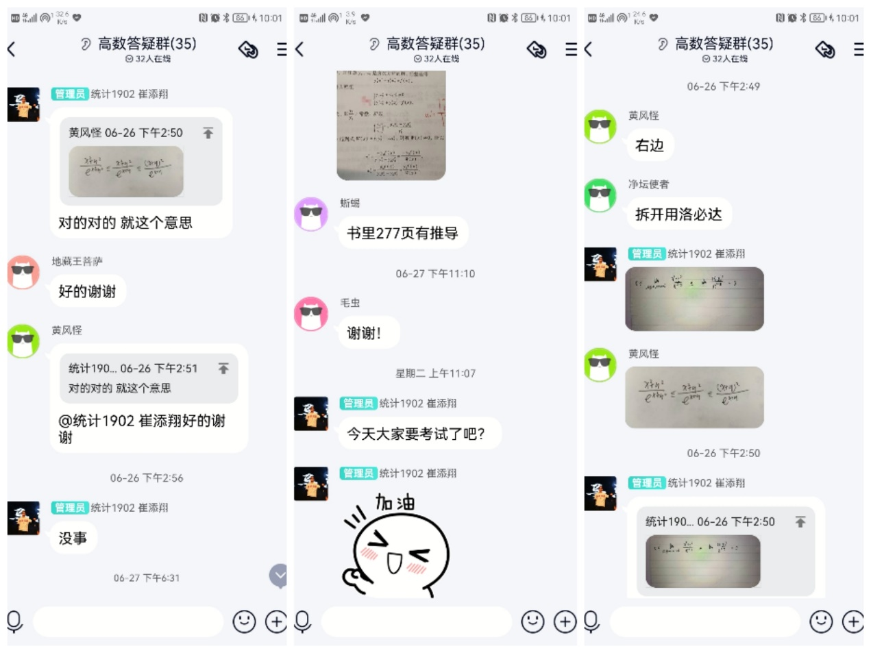 本次高等数学考前辅导没有开展直播课程,采用去年辅导录播,并邀请到了数统院统计1902班辅学义工崔添翔为大家答疑。同学们提出的问题都能够得到很好的解决,并且在考前学长特地为学弟学妹们加油助威。