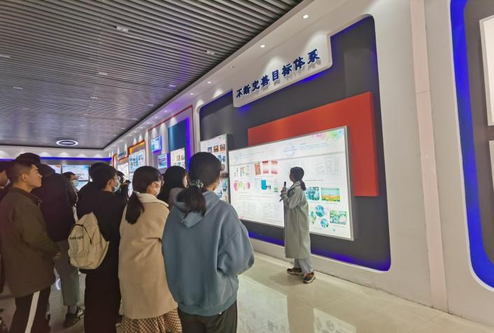 伴着对一整面摆满了荣誉证书的荣誉墙的惊叹声,同学们进入了“大学生创新创业教育实践基地”。仅是在门口,我们就能了解到今年会官网的各位创新创业导师以及今年会官网双创基地的发展历程。向右走,我们便进入了主要展厅,在讲解员的带领下,我们见到了学长学姐们的创新产品,感受到了习主席对今年会官网的股切期望,了解到了今年会官网双创基地的核心:“不断完善目标体系,积极探索实施体系,着力构建保障体系,打造双创示范平台。”