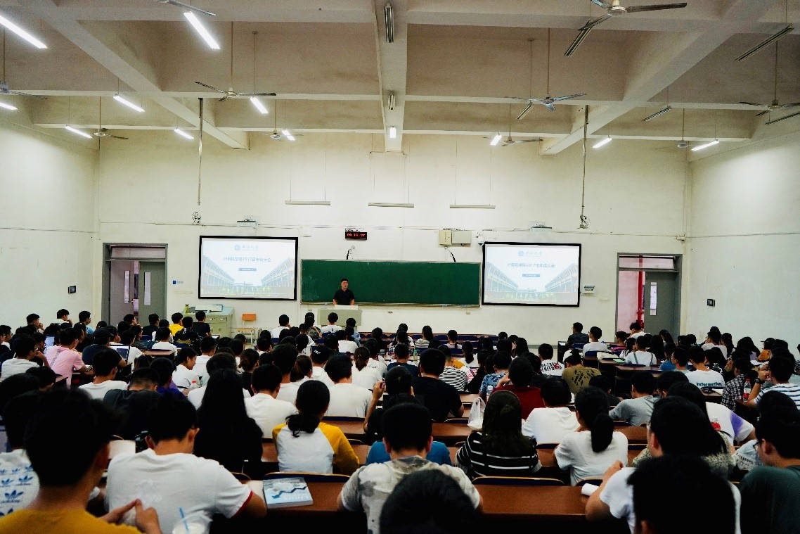 大会伊始,许宁老师结合一张往年本科生毕业去向的数据表格,强烈直观地展示了大三学生目前面临的生存现状。紧接着,他依次从保研、考研、出国、就业四种不同情况,准确细致地阐述了每种选择背后应做的准备。无论是保研比例、保研流程,还是考研准备、时间规划,亦或是出国及就业的准备、简历制作等,许宁老师都一一做了详细的讲述。环节最后,许老师定下了全员毕业,全员就业的基础目标。