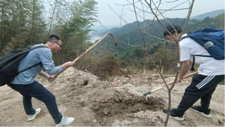 在植树过程中,有一位总是在靠近边缘位置种树的志愿者,询问原因之后,他指着山下一条河的堤坝说:“如果我以后经过那里,我就可以看到它们了。”看着计划区域整整齐齐的种满一棵棵树苗,志愿者们虽然身体劳累,但心中却充盈着无尽的喜悦。
