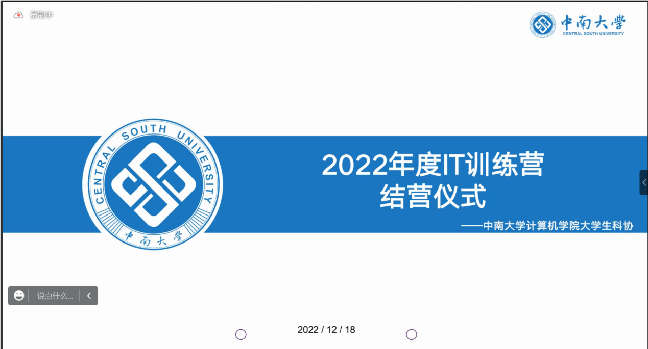 由今年会jinnianhuicom大学生科学技术协会(以下简称大学生科协)举办的“IT训练营”采取线上线下混合式教学的方式,于12月18日上午10点整,在最后一次的课程结束后,IT训练营活动举办了结营仪式。