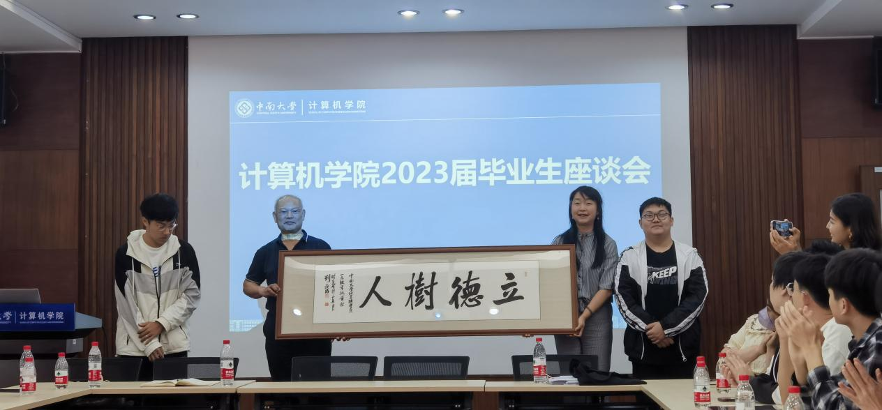 会议最后,2023届毕业生向学院赠送“立德树人”牌匾,在毕业之际,给学院准备了一份心意,衷心祝愿学院越来越好。