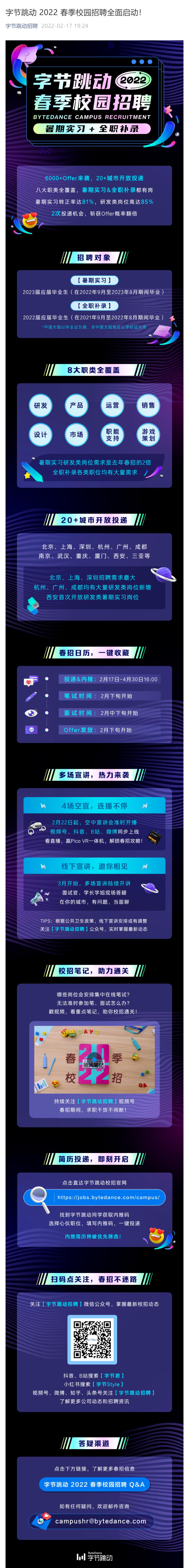 详情请点击:字节跳动 2022 春季校园招聘全面启动! (qq.com)
