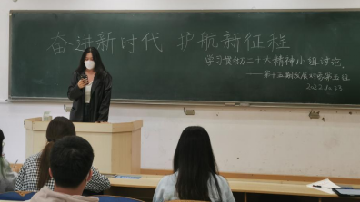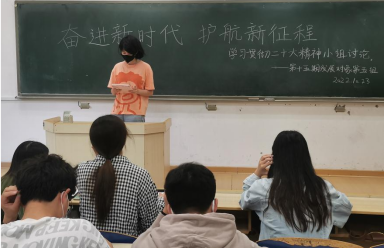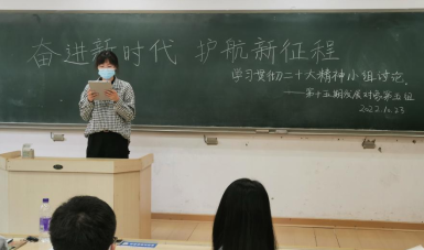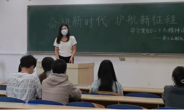 同学们发言结束后,史玮璇同学对此次活动做总结。党的二十大报告凝聚全党智慧,反映人民意愿,是我们党团结带领全国各族人民在新时代新征程坚持和发展中国特色社会主义的政治宣言和行动纲领,我们每一个人都将认真学习宣传贯彻党的二十大精神,深入践行习近平新时代中国特色社会主义思想,承担起实现中华民族伟大复兴的重任。